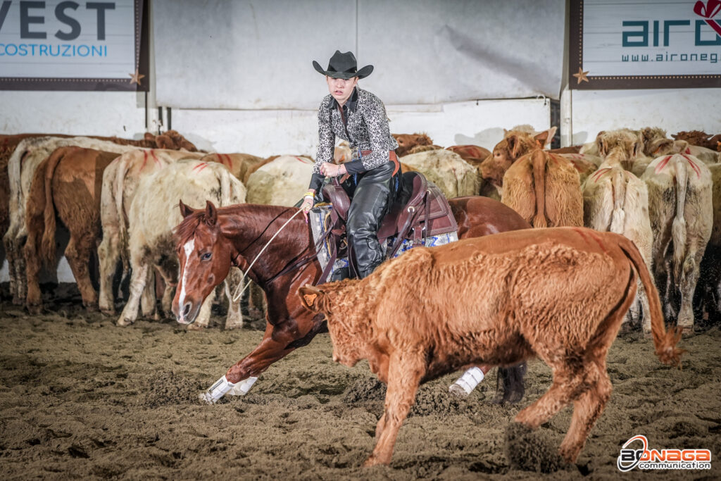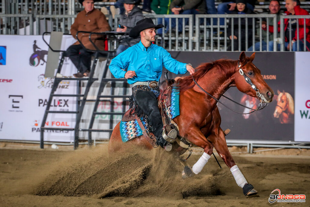 Leading the L1 was Gabriele Costantini of Italy aboard Mega Surprise Chic (NRHA Million Dollar Sire PS Mega Shine Chic x SGA Hot Surprise), a mare owned and bred by Mario Spada.