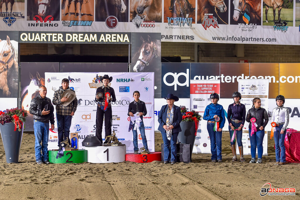 In the NRHA Youth 14-18 ancillary class, Eva Capello rode RS Wifi Jac to first place scoring a 212. Tying for second place half-a-point behind were Isabel Morresi and Hollywood Gun Orima (Hollywood Gun Dun It x Miss Secorima); Anna Bergamelli and Sparkwest; Carlotta Lambrughi and BH Double Spook.