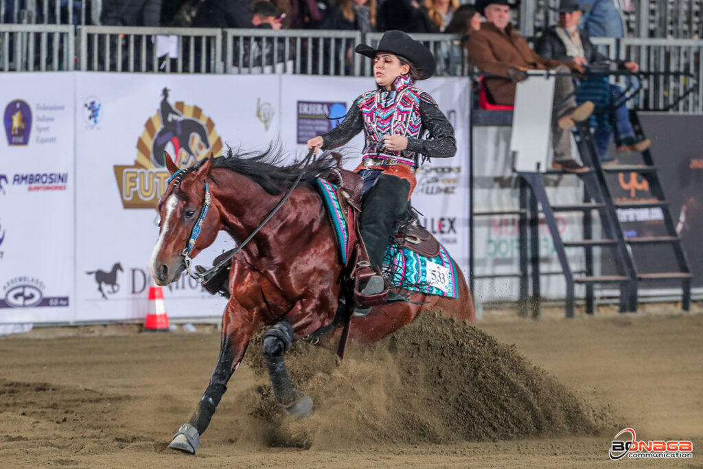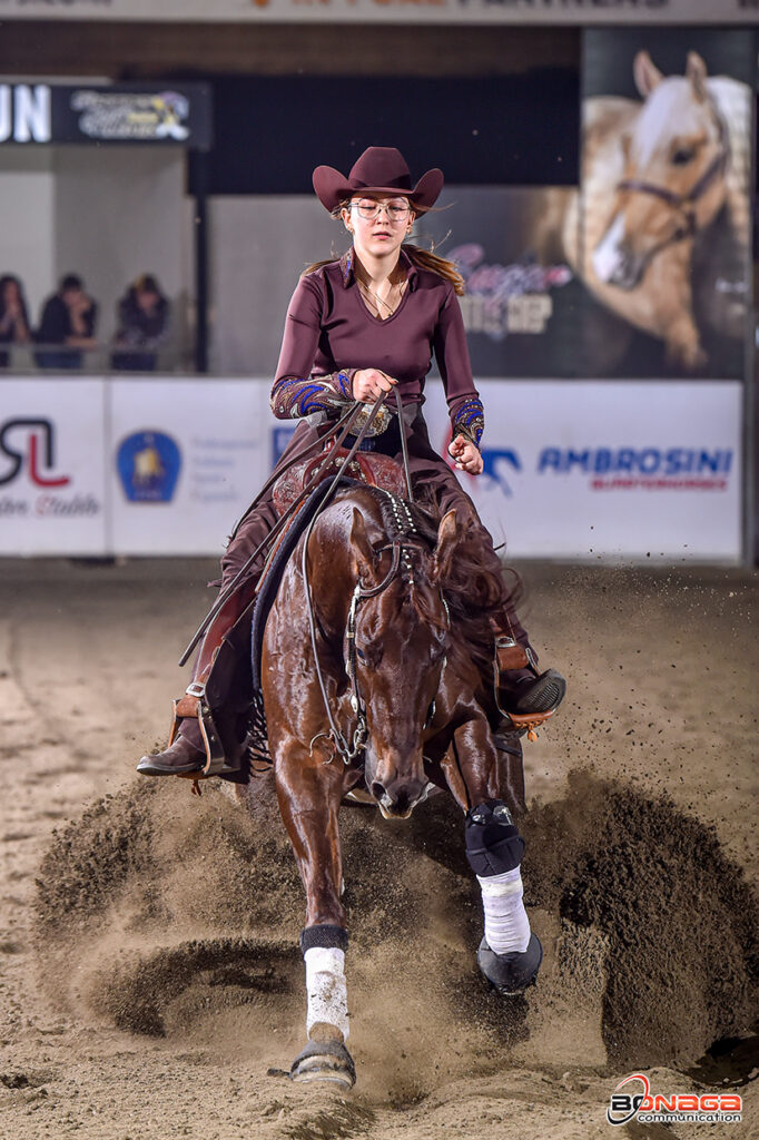 Cremona, November 14—The $700.000-Added IRHA/IRHBA/NRHA Futurity held in Cremona, Italy, sizzled with excitement on Friday Finals day. In the Spooks Gotta Whiz IRHA/IRHBA/NRHA $166.400-Added 3-Year-Old Non Pro Futurity, Anna Maria Zehetbauer claimed both the Level 4 Non Pro Championship and Reserve Championship.