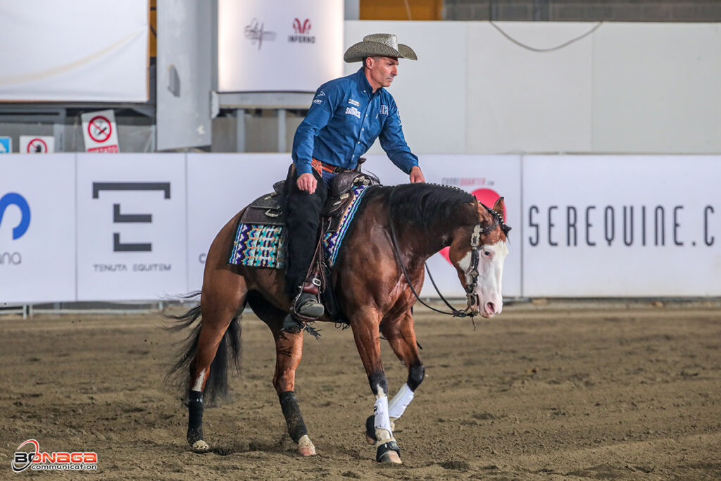 Pietro Paolo Ambrosini and his mare BH Topsail Whimpys (NRHA $13 Million Sire Topsail Whiz x Star Wimpis Del Maso), owned by Ambrosini QH and bred by Bosin Hubert, finished second.