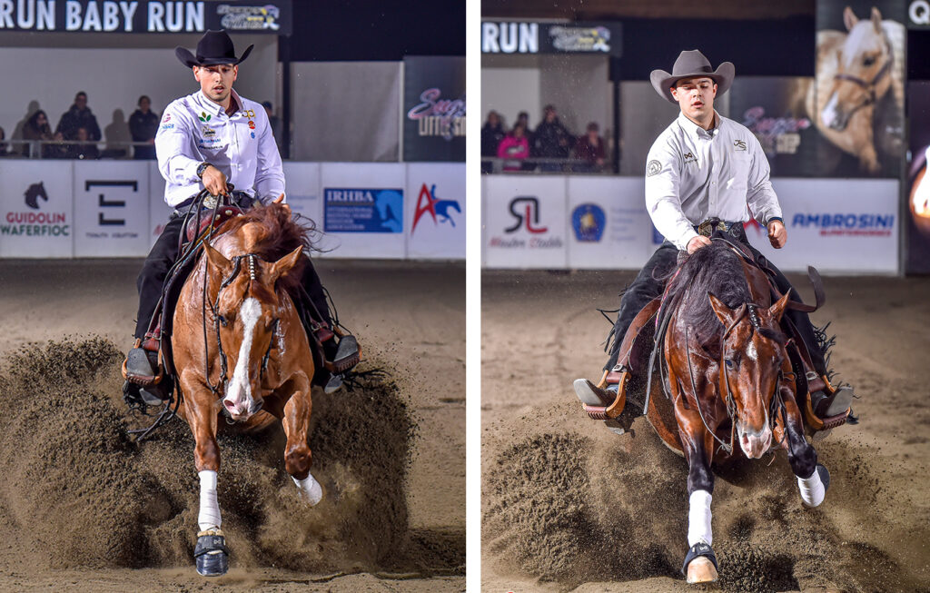 Alois Kompatscher and SG Lopez (NRHA $12 Million Sire Spooks Gotta Whiz x Frozen Spark), a mare owned by Diana Metrangolo and bred by Andrea Bianchini, scored a 219.5 for the Championship. Taking reserve honors with a 214.5 score was Dario Carmignani riding Spatatoo (Spatatino x Miss Dunnit Tari), a stallion he bred and owns.